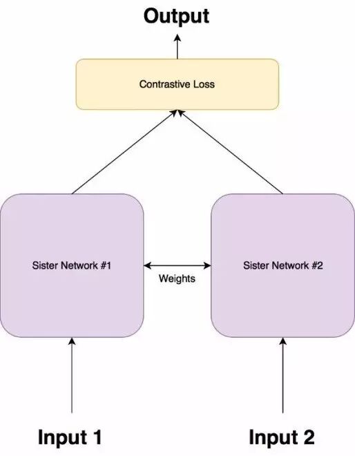它具有两个姐妹网络,它们是具有完全相同权重的相同神经网络。图像对中的每个图像将被馈送到这些网络中的一个。使用对比损失函数优化网络(我们将获得确切的函数)。