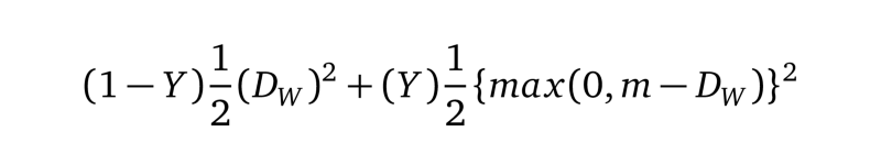 其中Dw被定义为姐妹孪生网络的输出之间的欧氏距离(euclidean distance)。数学上欧氏距离是: